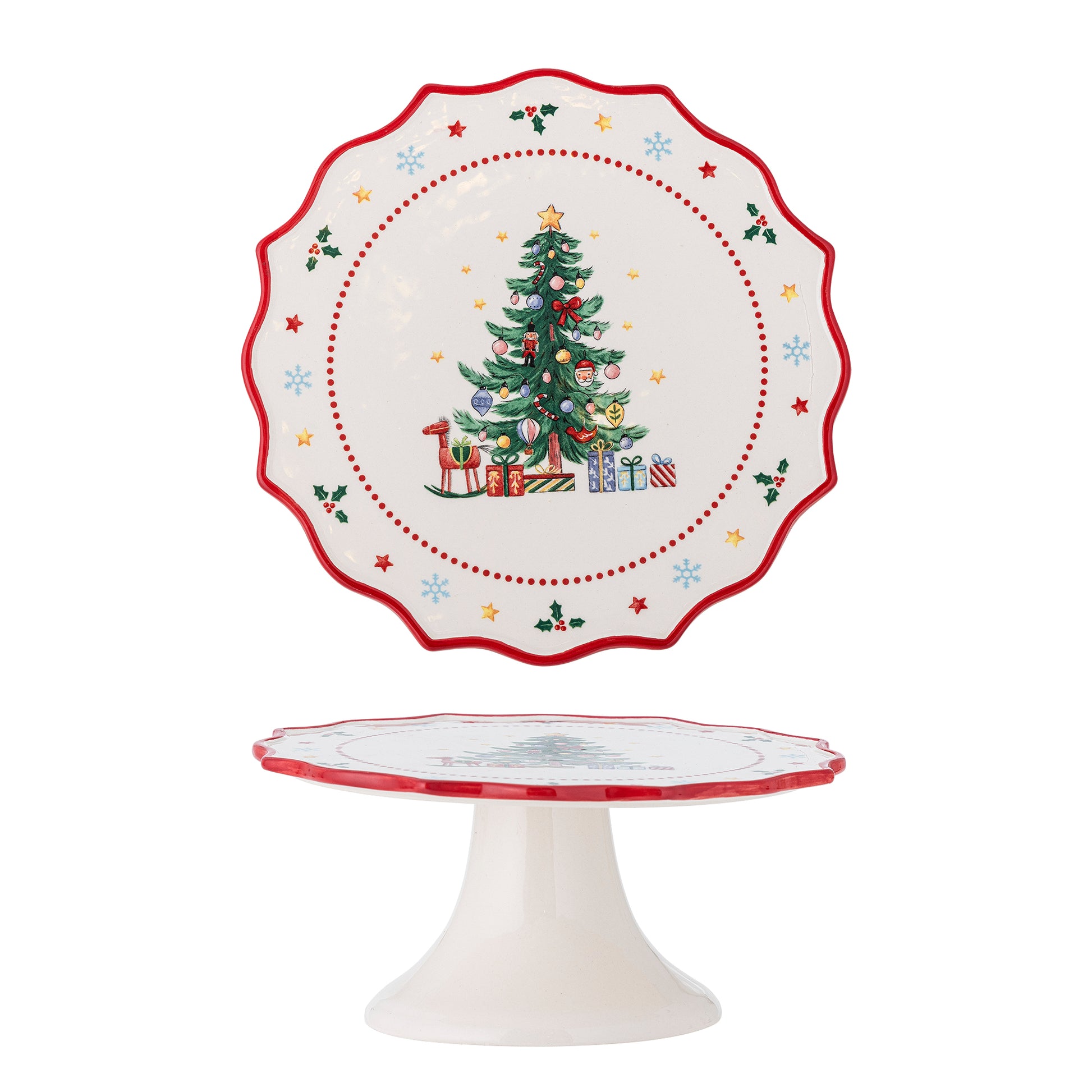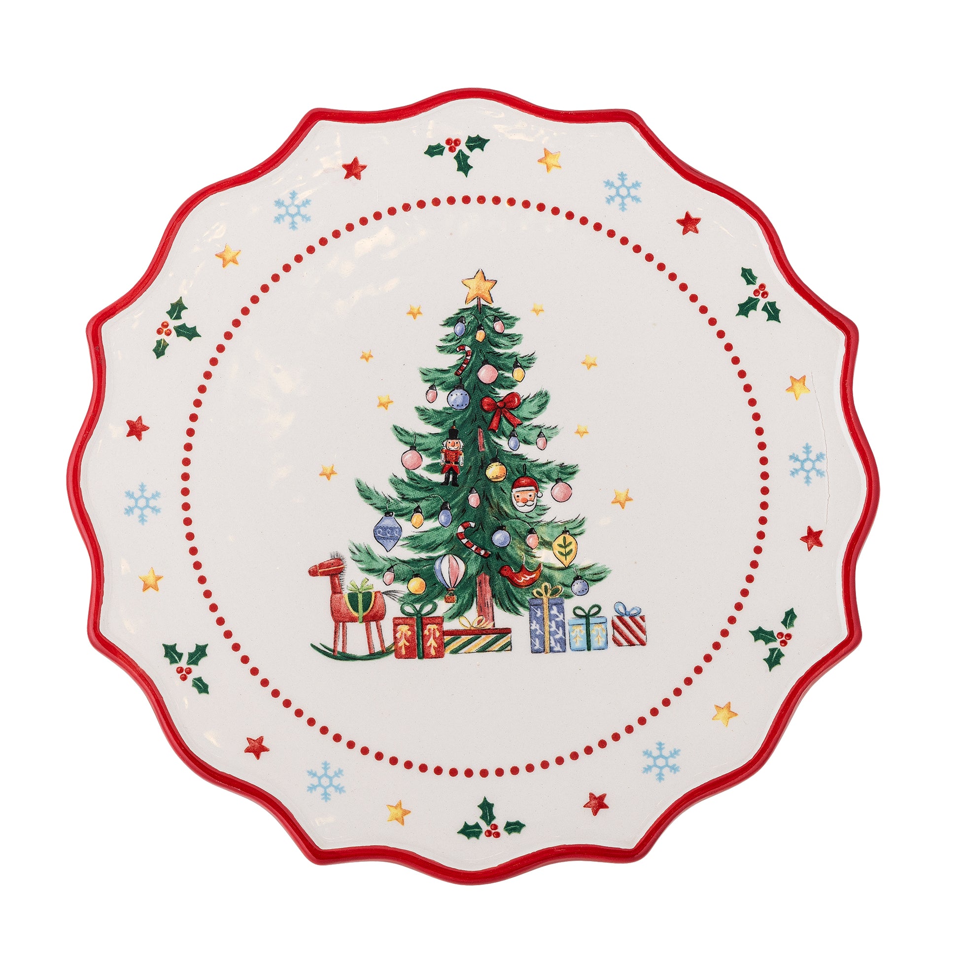 L'assiette à gâteau Naive de Bloomingville arbore un design détaillé d'arbre de Noël, entouré de motifs festifs vibrants. Son bord rouge peint à la main met en valeur les contours ondulés de l'assiette, offrant un fond élégant pour les friandises de Noël. Chaque assiette présente une finition peinte à la main unique, garantissant que chacune est unique, tout en ajoutant une touche distinctive à votre décoration de fête et à vos tables.
