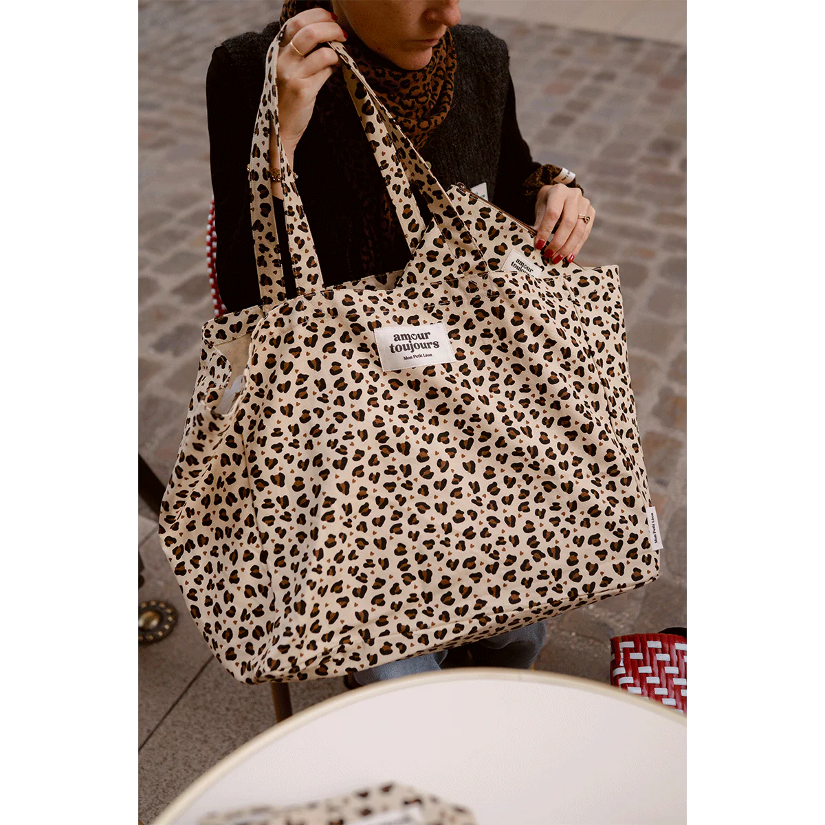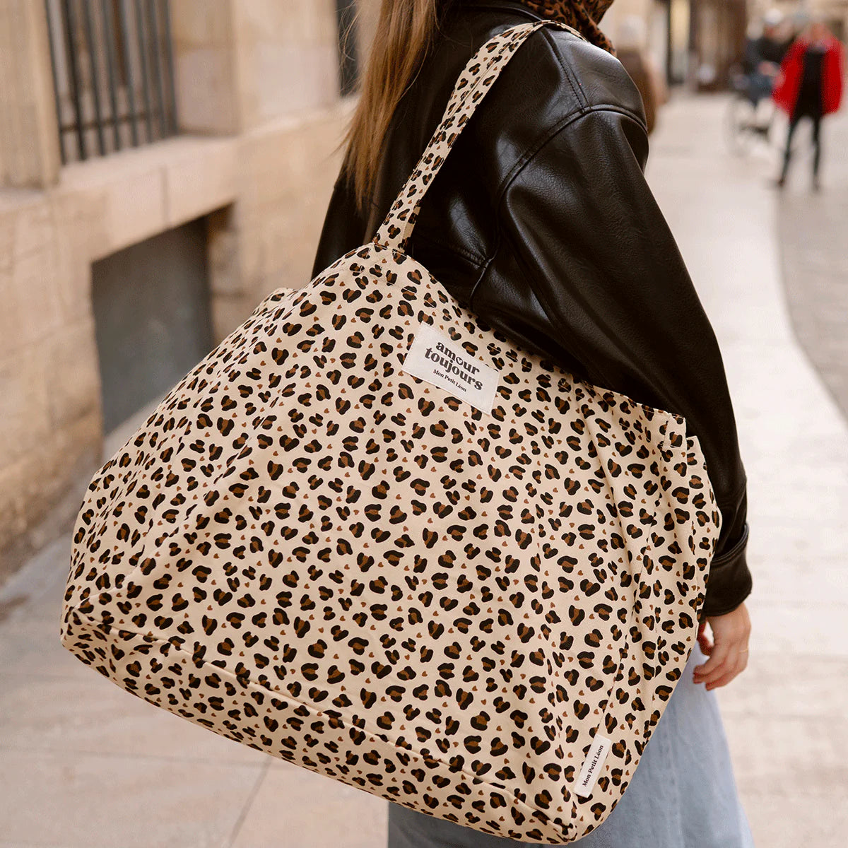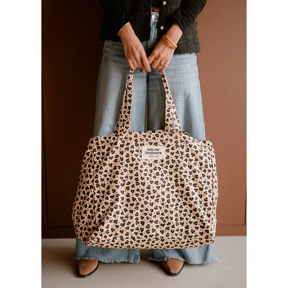 Cabas XXL Léopard Coeur - Amour Toujours