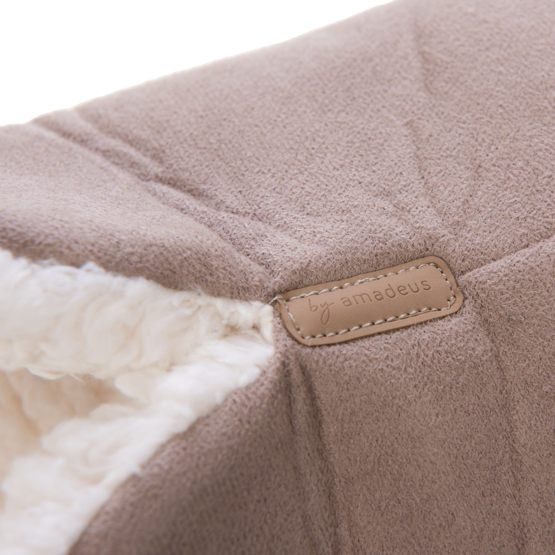 Chaussons Amadeus taille 39/40 en textile taupe, dotés d'une doublure en fausse fourrure pour un confort optimal. Leur design enveloppant et leur poids léger (800g) facilitent la présentation et la revente dans les gammes de vêtements d'intérieur. Accompagnés d'un sac de rangement assorti, ils séduisent une clientèle recherchant chaleur et praticité.