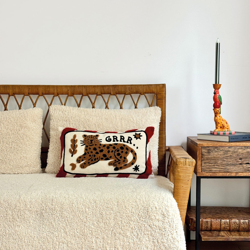 Un coussin en toile épaisse naturelle brodé. Le dos en toile uni naturelle, une touche artistique alliant couleur et matière fera vibrer votre intérieur et complétera parfaitement votre décoration. Vendu avec garnissage (100% polyester). Déhoussable