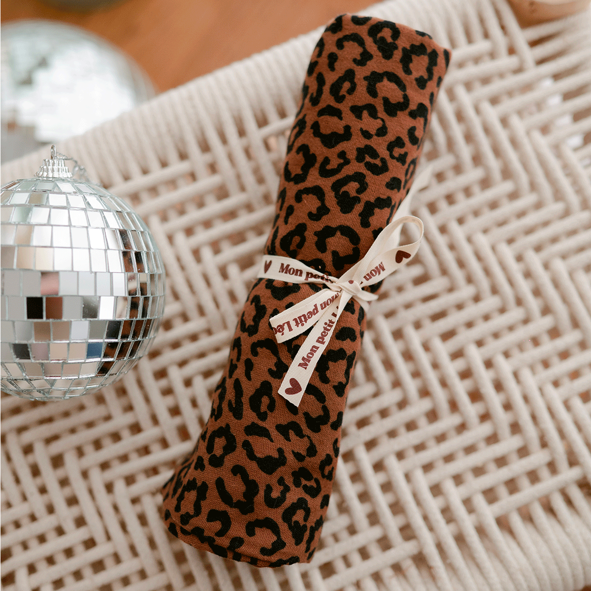 Avec nos motifs iconiques petits coeurs, léopard marron foncé, ou encore les motifs toux doux branchages, le foulard, dans sa superbe gaze de coton, apportera énormément de douceur à une tenue.