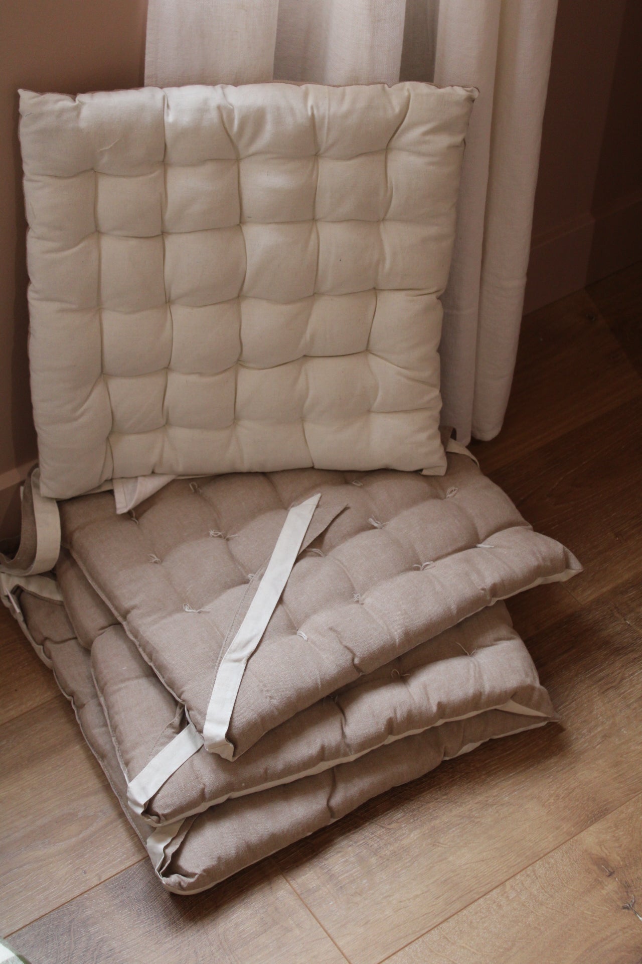 Ces galettes de chaise réversibles 100% coton et garnissage polyester habilleront vos chaises.