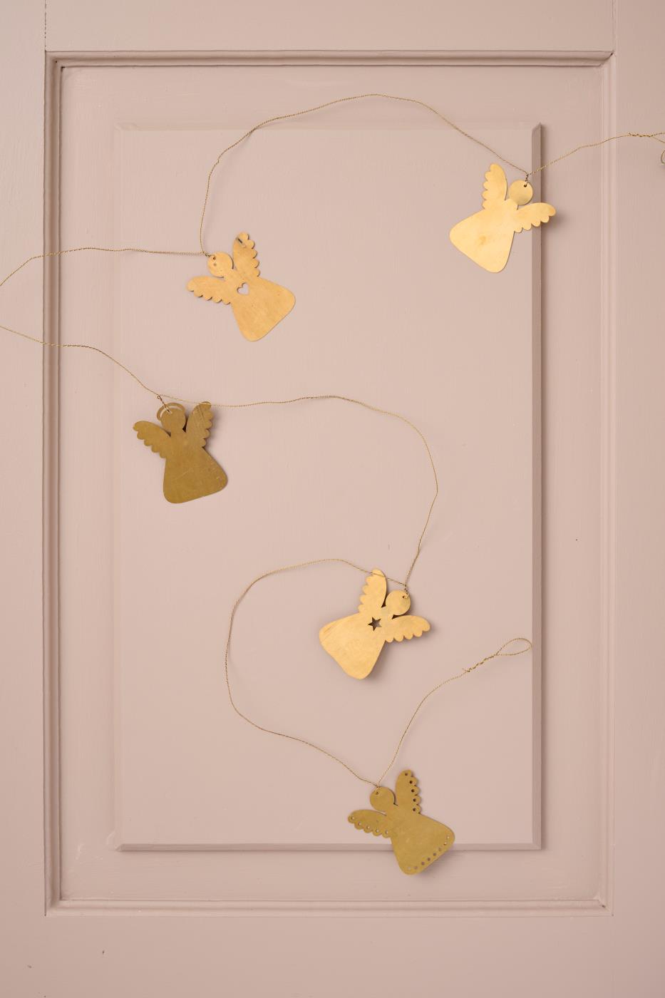 Chaîne de 5 figures d'ange différentes, en laiton, apporte rapidement une atmosphère de Noël magique à votre maison. Le laiton est un matériau doux et nécessite donc une manipulation prudente. La couleur du laiton peut avoir différentes nuances et peut changer en raison du toucher et de l'exposition à l'air, ce qui contribue à sa belle patine. Le vernis à laiton peut être utilisé pour le nettoyage, mais il doit être appliqué avec prudence.
