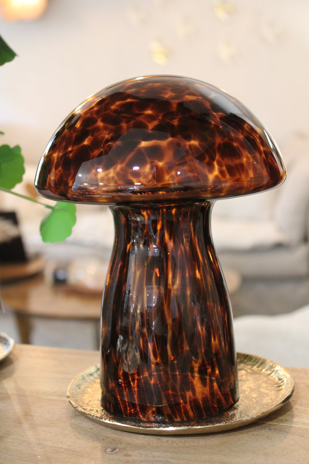 Craquez pour la lampe pascale léopard au look rétro et original. Entièrement en verre, elle joue avec les reflets grâce à son effet moucheté dans des tons ambrés. Une fois allumée, elle diffuse une lumière douce et chaleureuse, parfaite pour une ambiance cosy.