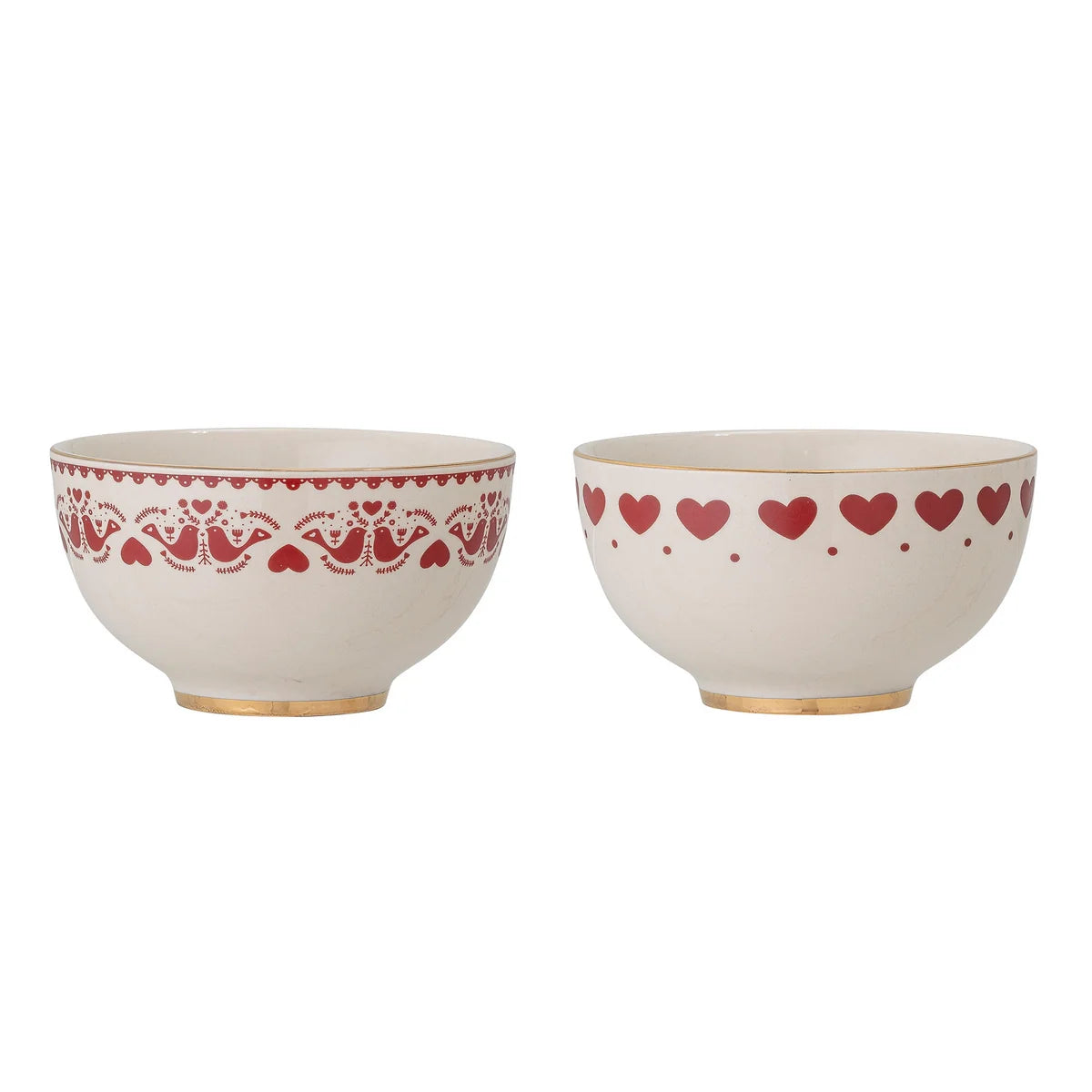 Les bols Jolly de Bloomingville sont un set de 2 beaux bols qui peuvent être utilisés pour servir des plats ou pour la décoration. Elles sont fabriquées en faïence et leur couleur rouge leur confère une belle ambiance de Noël.