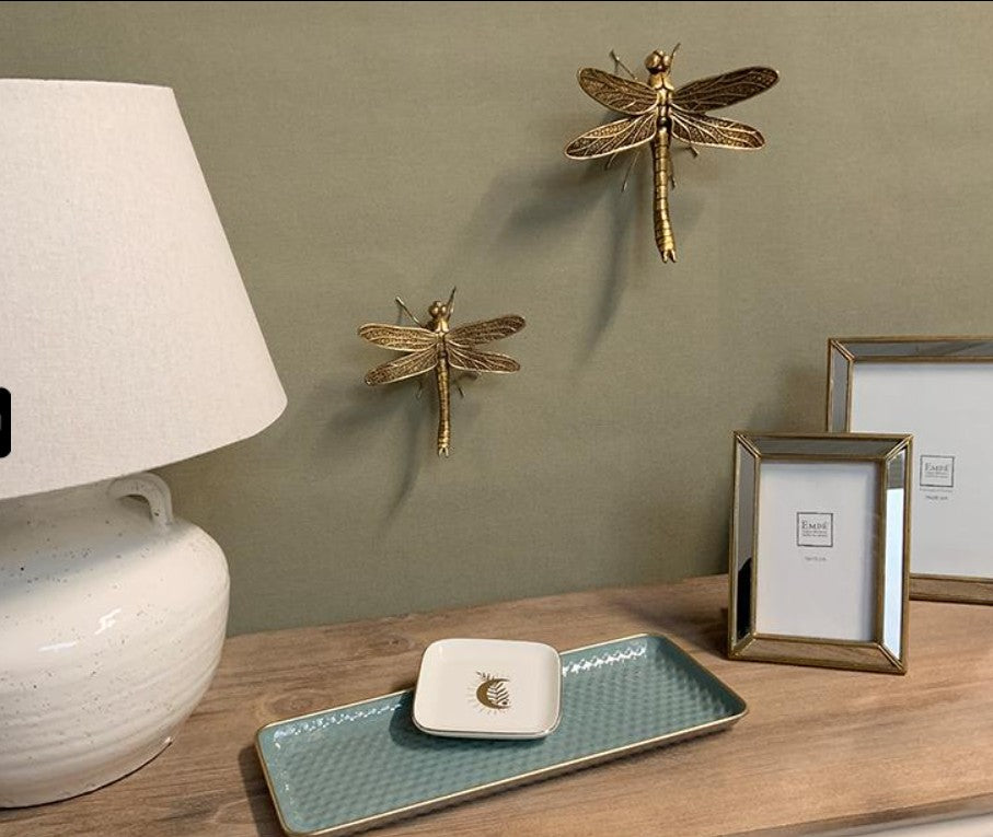 Son design doré et original permettra à ce lot de libellules de facilement trouver sa place sur l'un de vos murs. Vous pourrez parfaitement les accrocher dans votre salon, dans votre chambre, dans votre entrée ou encore dans votre salle à manger. Dimensions : 18.5x17x8.5cm et 15x15x5cm