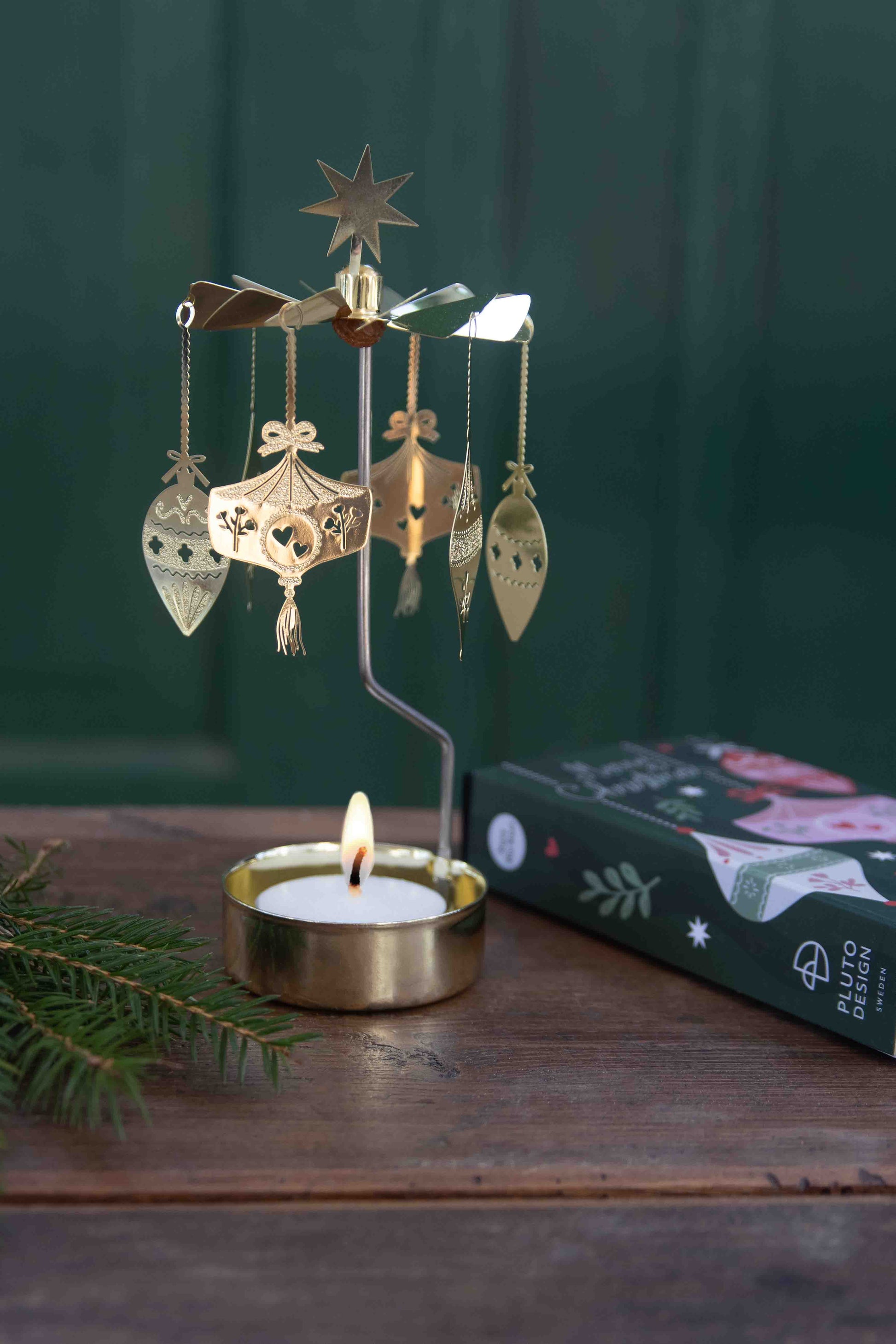 Le carillon d'ange ORNEMENTS est un carillon d'ange classique où d'élégantes boules de Noël tournent au temps de la flamme. Une décoration atmosphérique avec une touche d'inspiration rétro - parfaite pour le sapin de Noël et la table du dîner.