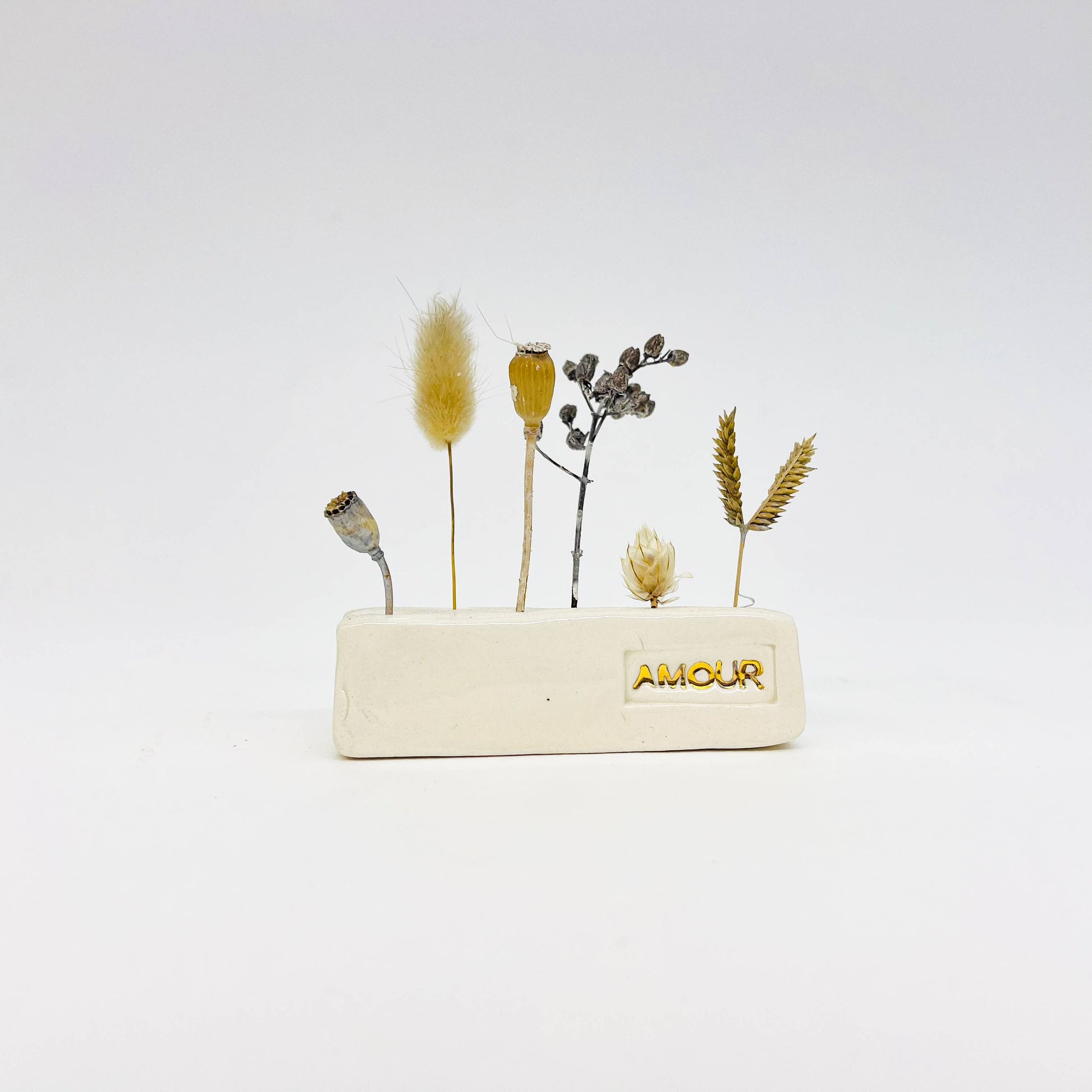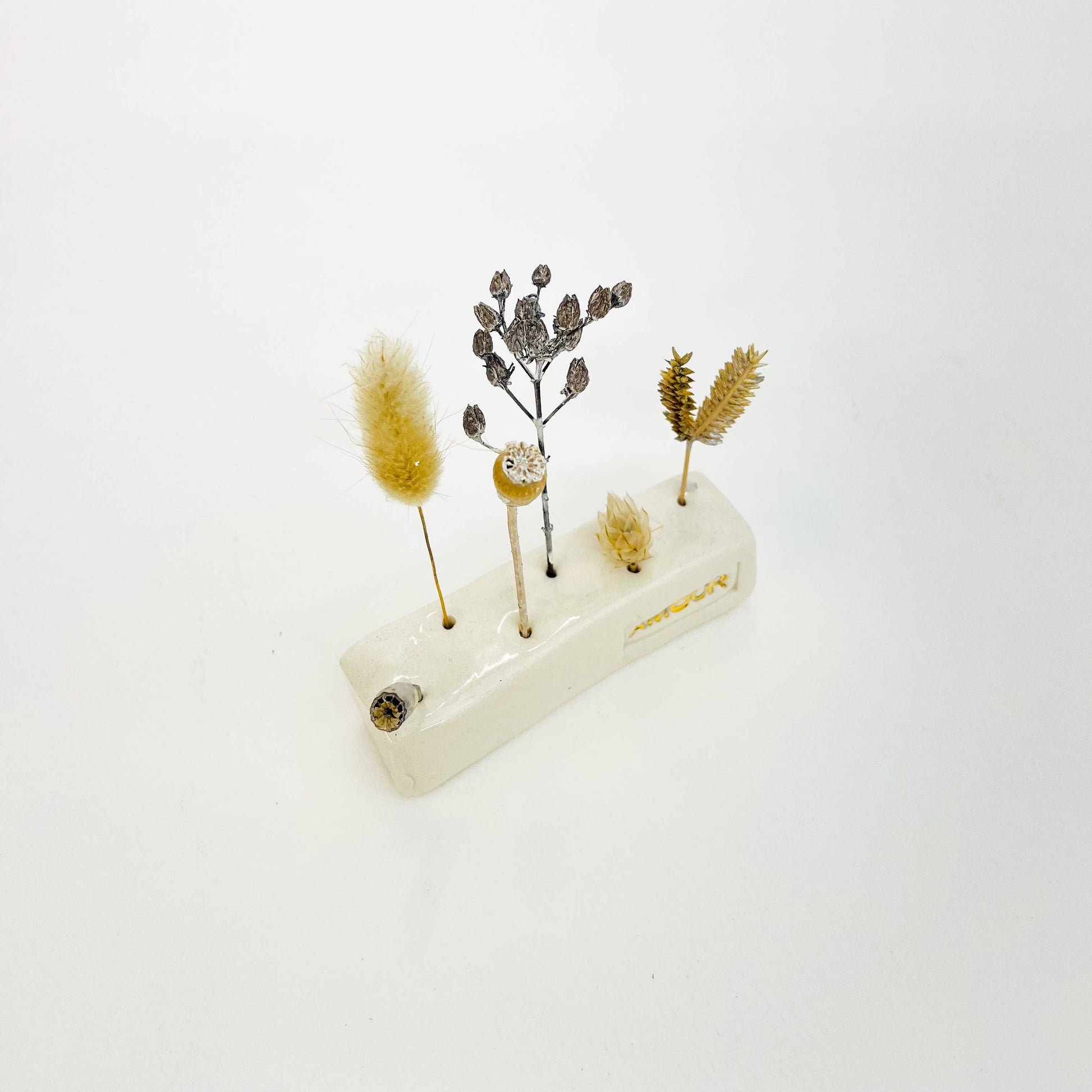 Painà fleurs imaginé pour mettre en valeur la délicattesse de fleurs séchées. Le pain à fleurs, création originale de Porcelaine Moderne est un de nos best sellers, il est modelé à la main et doré à l'or fin au pinceau dans notre faîencerie du bonheur située à côté d'Arcachon dans le Sud-Ouest de la France.
