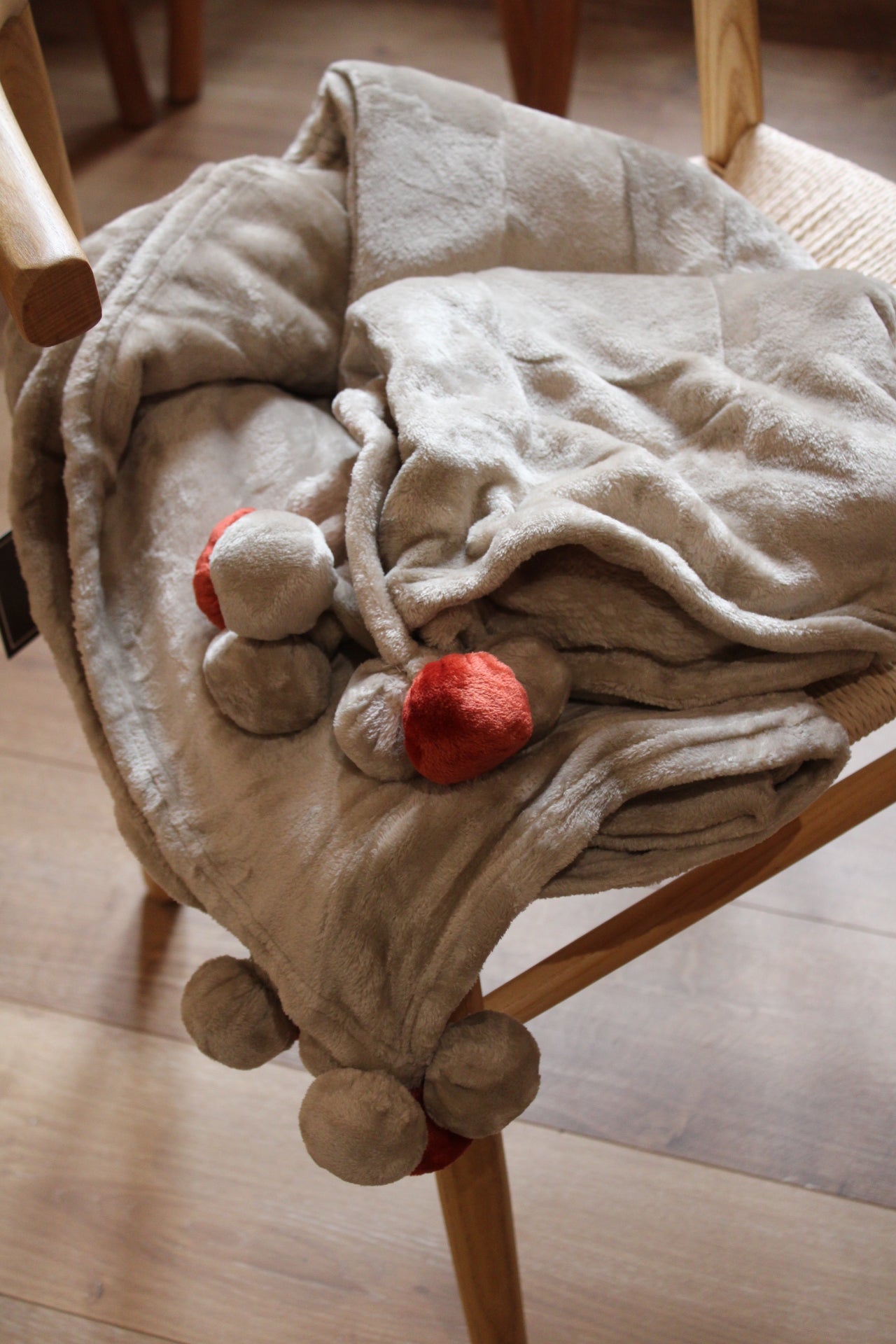 Ce plaid avec ses pompons déco sera très doux et vous invitera à vous y envelopper et à ne plus en sortir. Il est en polyester et se lave parfaitement
