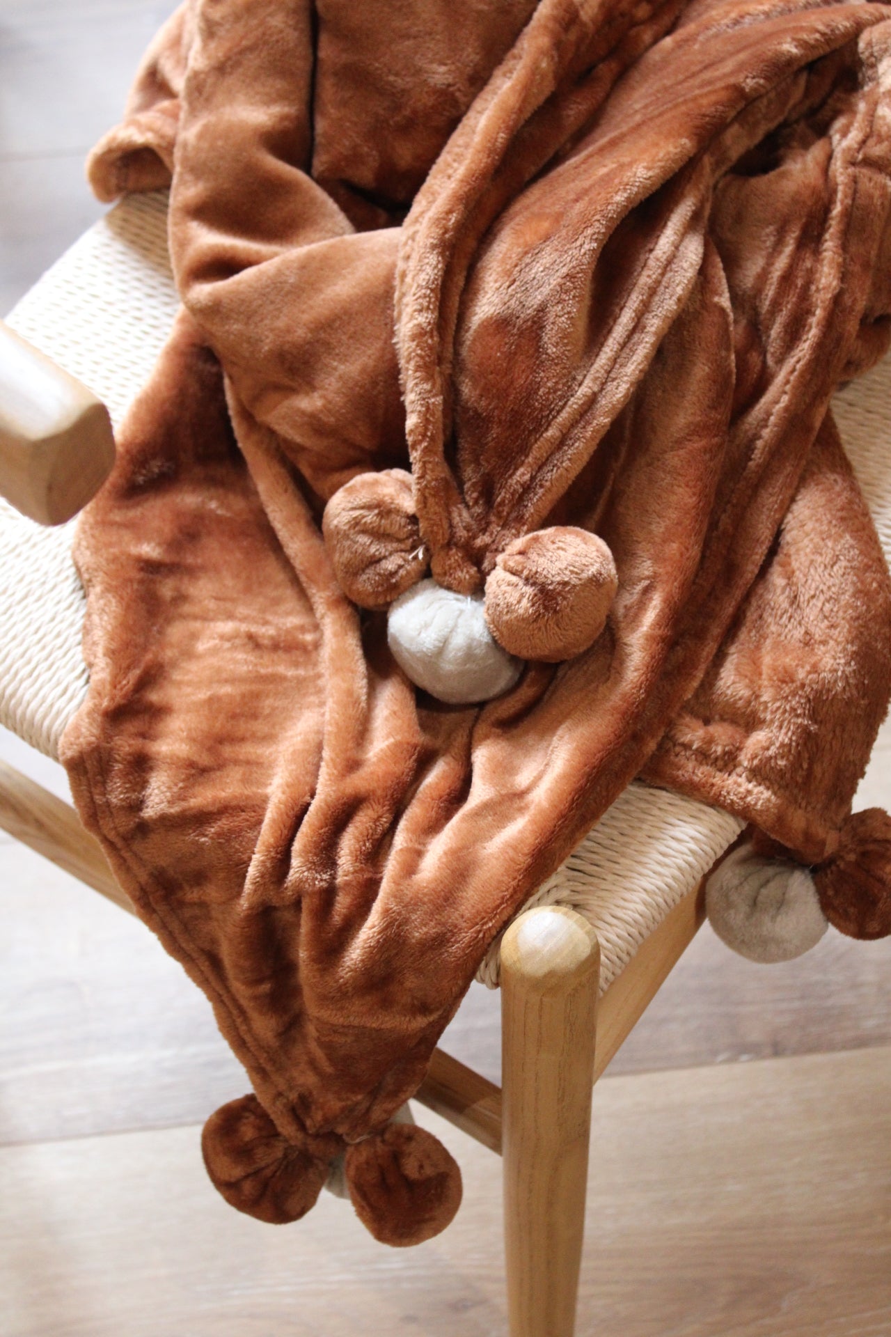 Ce plaid avec ses pompons déco sera très doux et vous invitera à vous y envelopper et à ne plus en sortir. Il est en polyester et se lave parfaitement