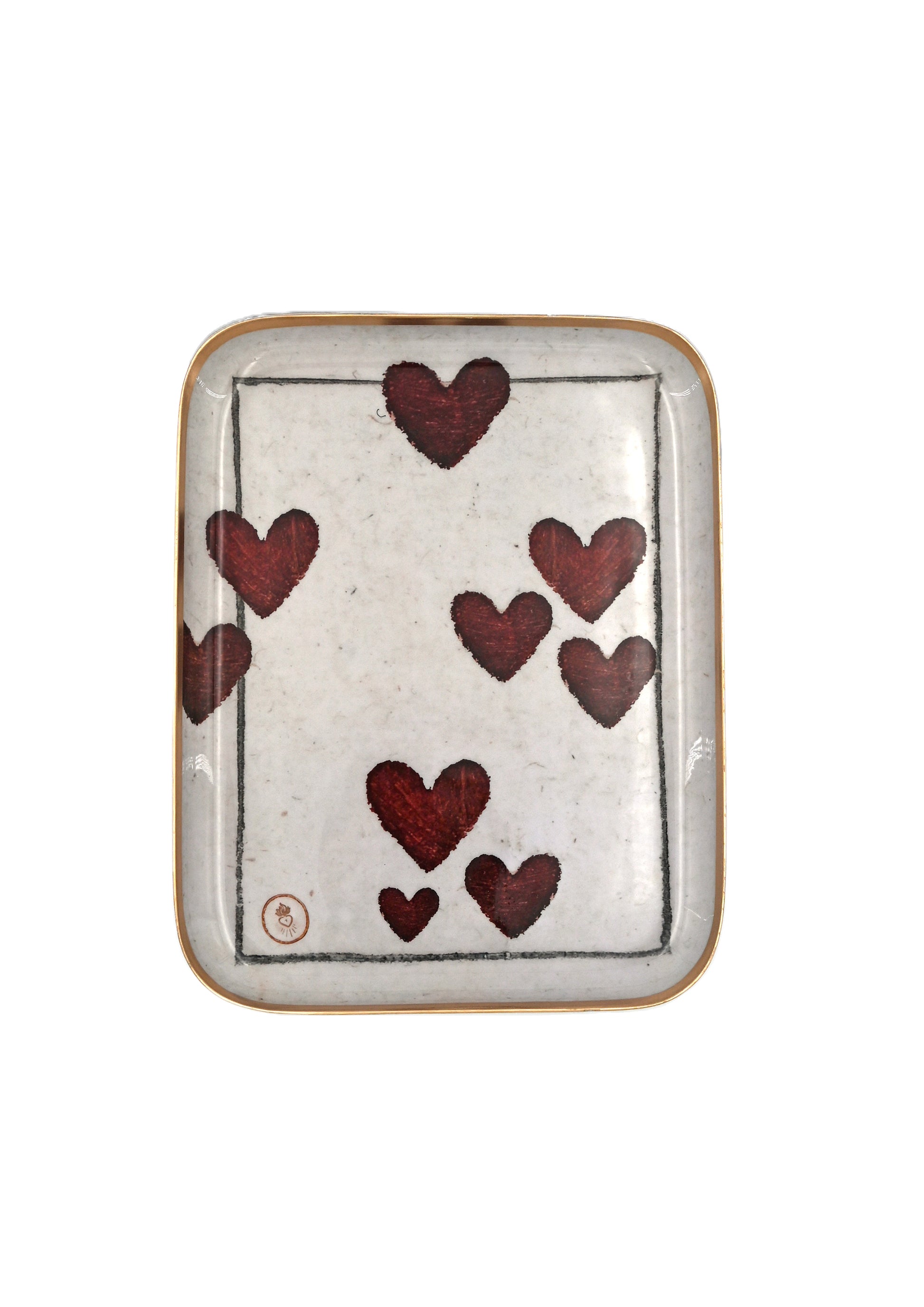 100 % aluminium émaillé. Finition bordure dorée à la main.