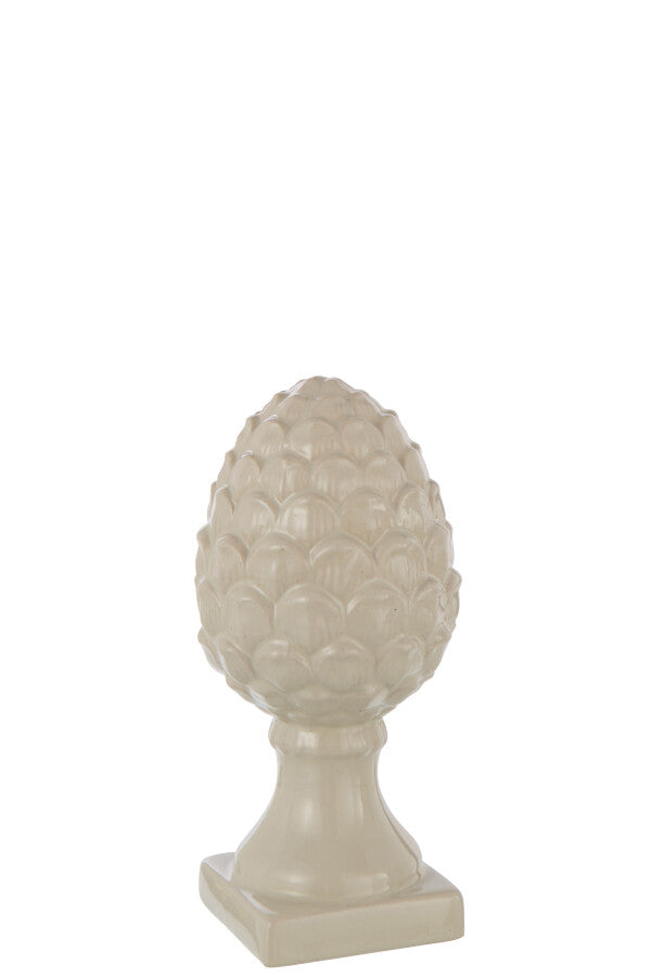 Pomme De Pin Sur Base Brillant Porcelaine Beige Medium