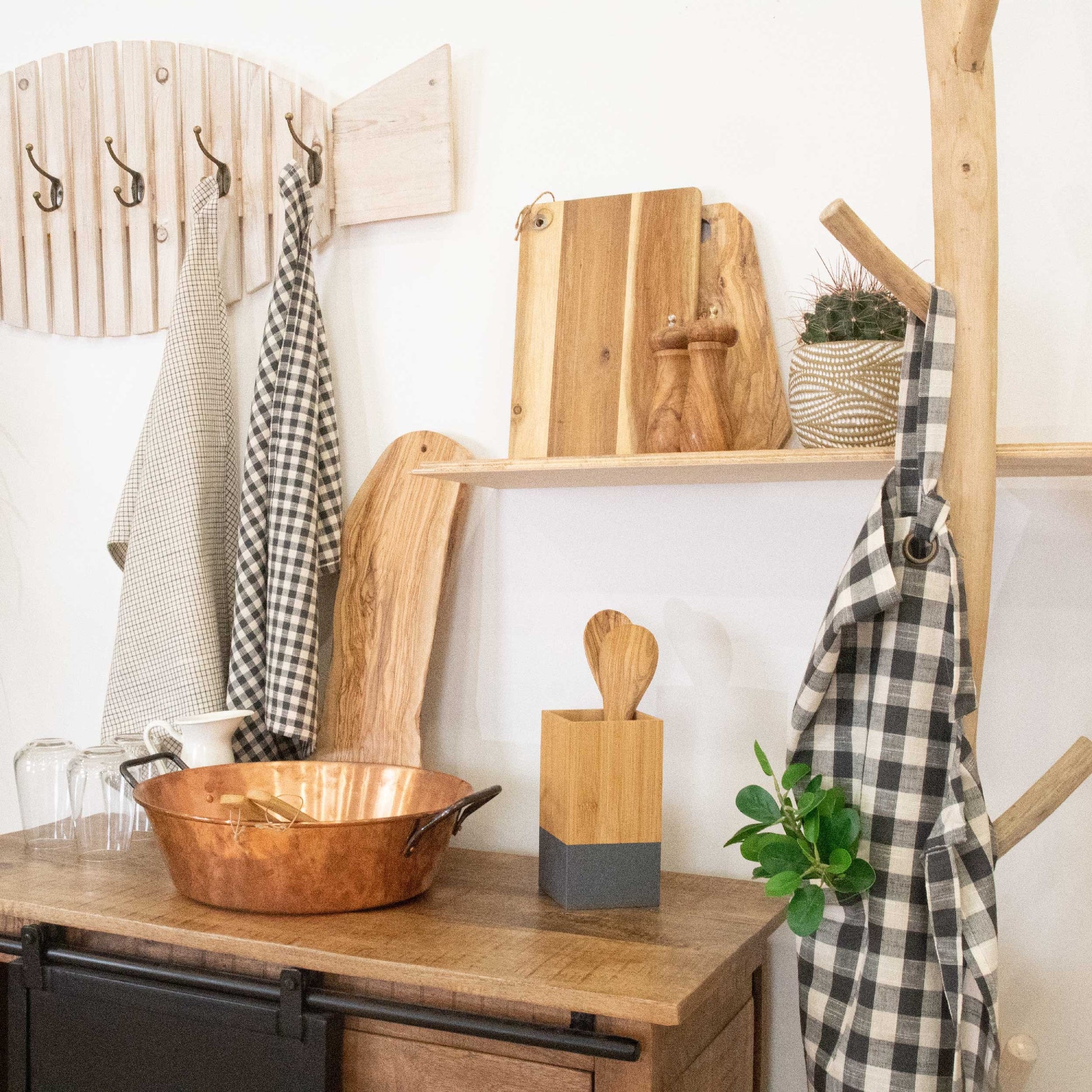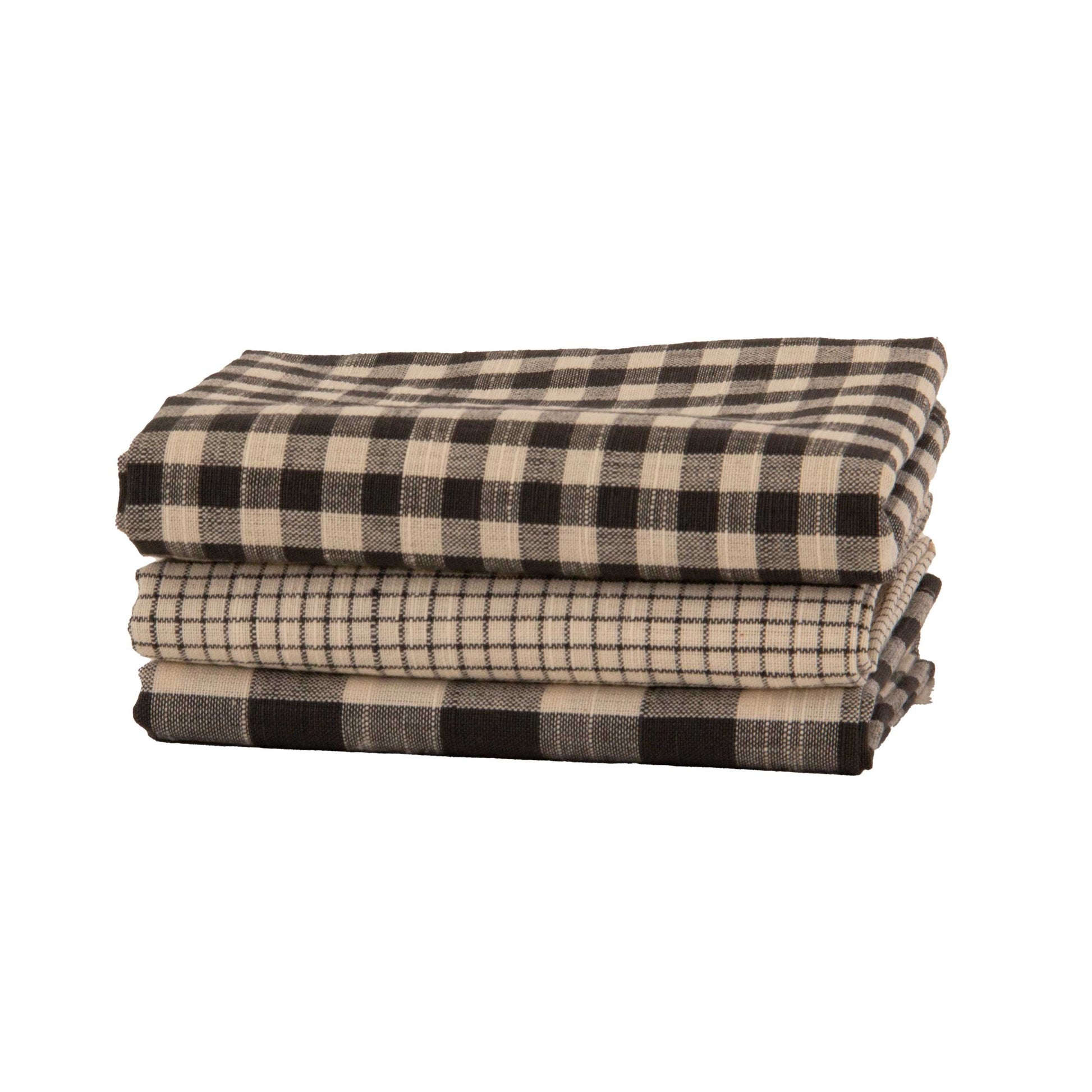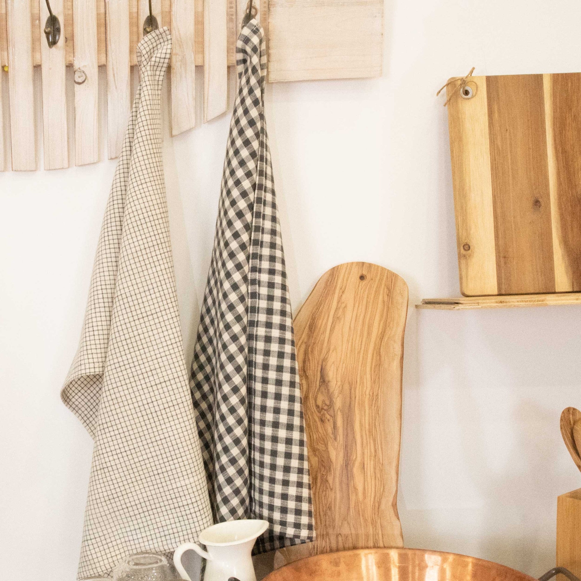 Lot de 3 torchons à carreaux de trois dimensions différentes 100% coton fil teint ainsi que le tablier de cuisine réglable confectionné dans le carreau le plus grand